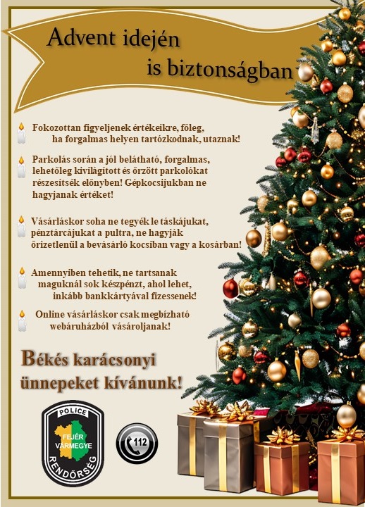 A Fejér Vármegyei Rendőr-főkapitányság felhívása a karácsonyi ünnepek idejére