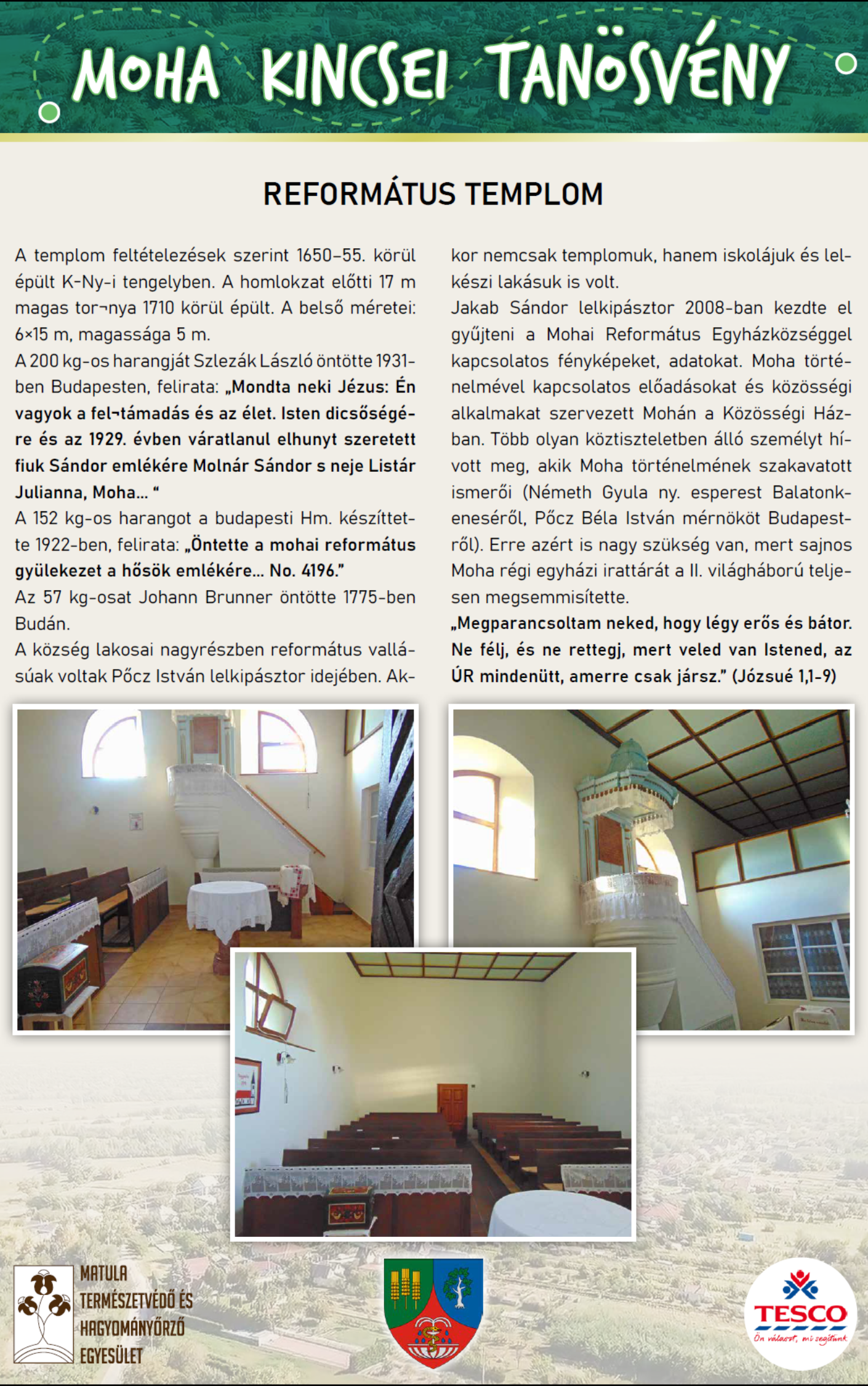 A templom a Moha Kincsei Tanösvénynek is részét képezi.